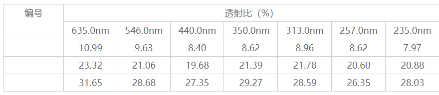 透射比測量不確定度:由重復測量分量、標準物質的均勻性分量、標準物質的穩定性分量及定值儀器分量構成。
