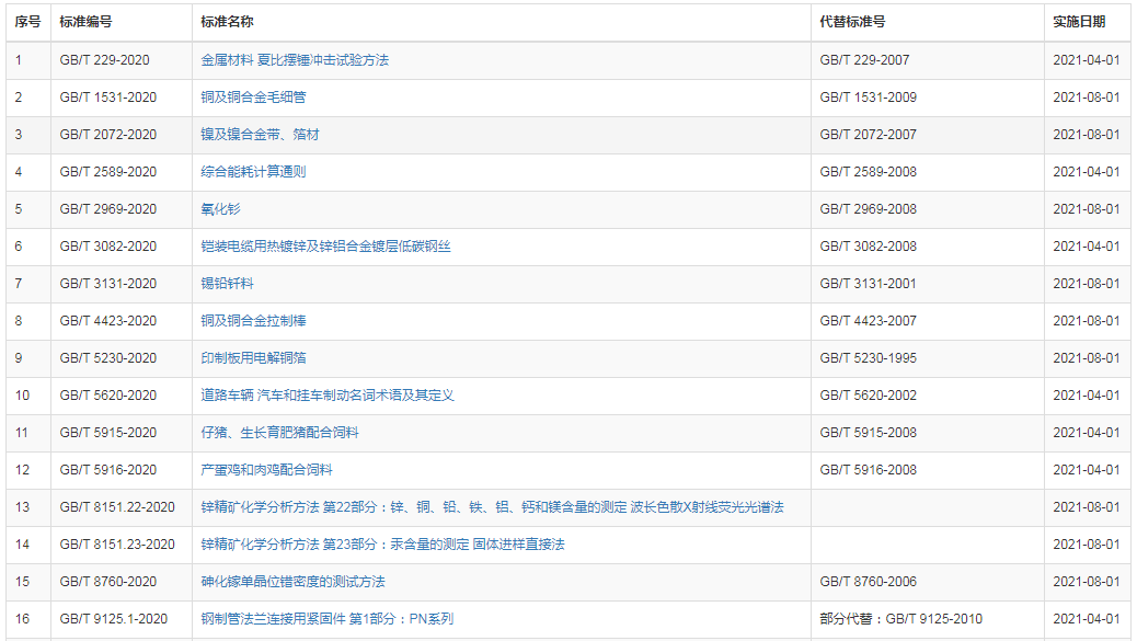2020年第20號—106項推薦性國家標準和5項國家標準修改單
